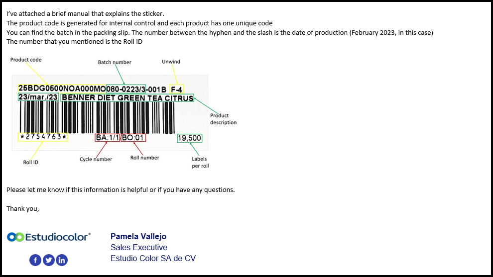 Estudiocolor Lot Code Explanation Updated November 07, 2024 14:20 Estudiocolor Lot Code Explanation Estudiocolor Lot Code Explanation.png100 KB Was this article helpful? 0 out of 0 found this helpful Comments 0 comments Article is closed for comments.